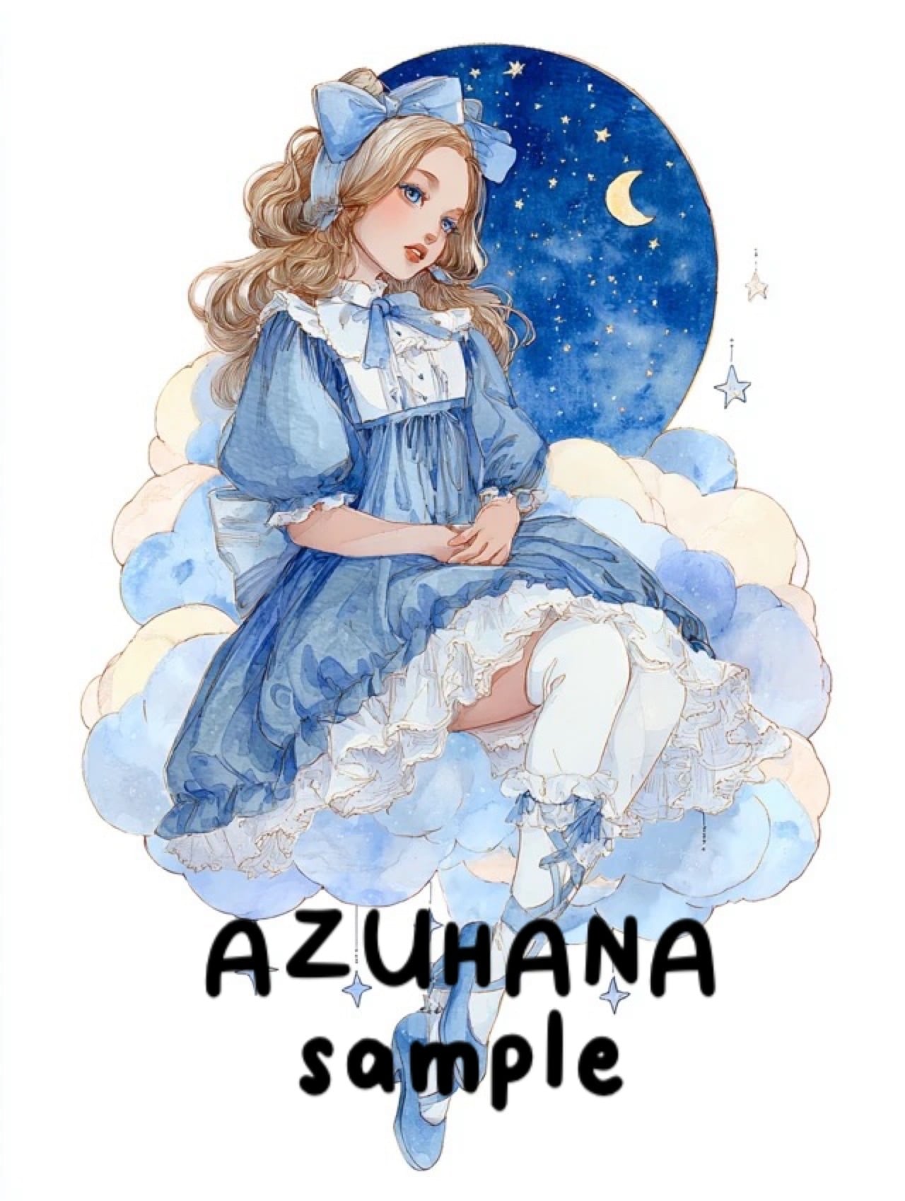 29 女の子 雲と月 ブルー ゆめかわ 人物ステッカー コラージュ素材