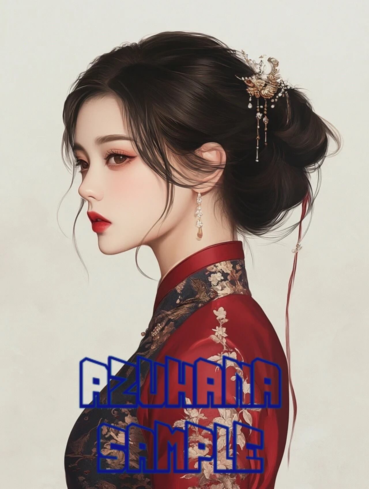96 女の子 中華美人 横顔 リアル画風 人物ステッカー コラージュ素材